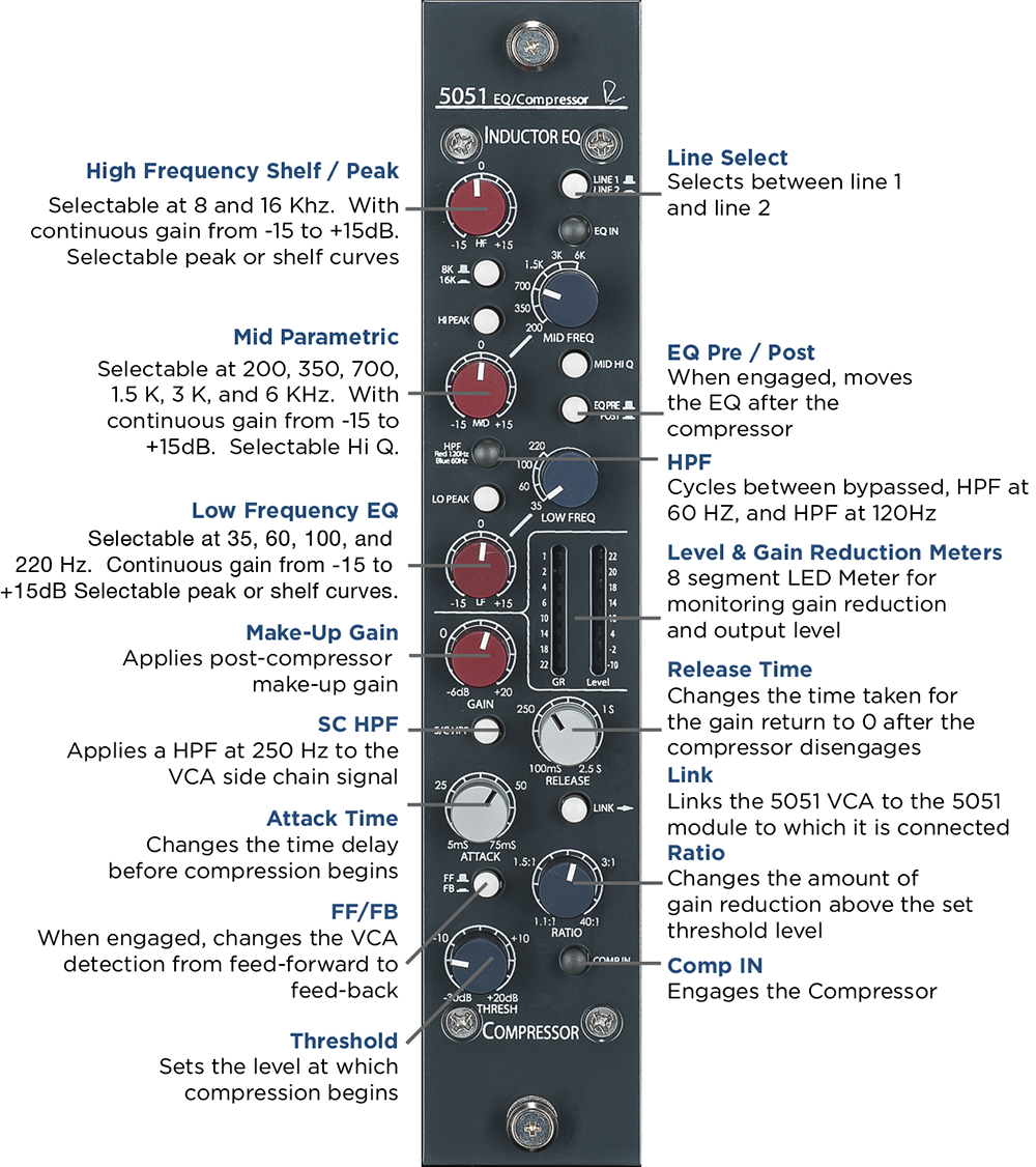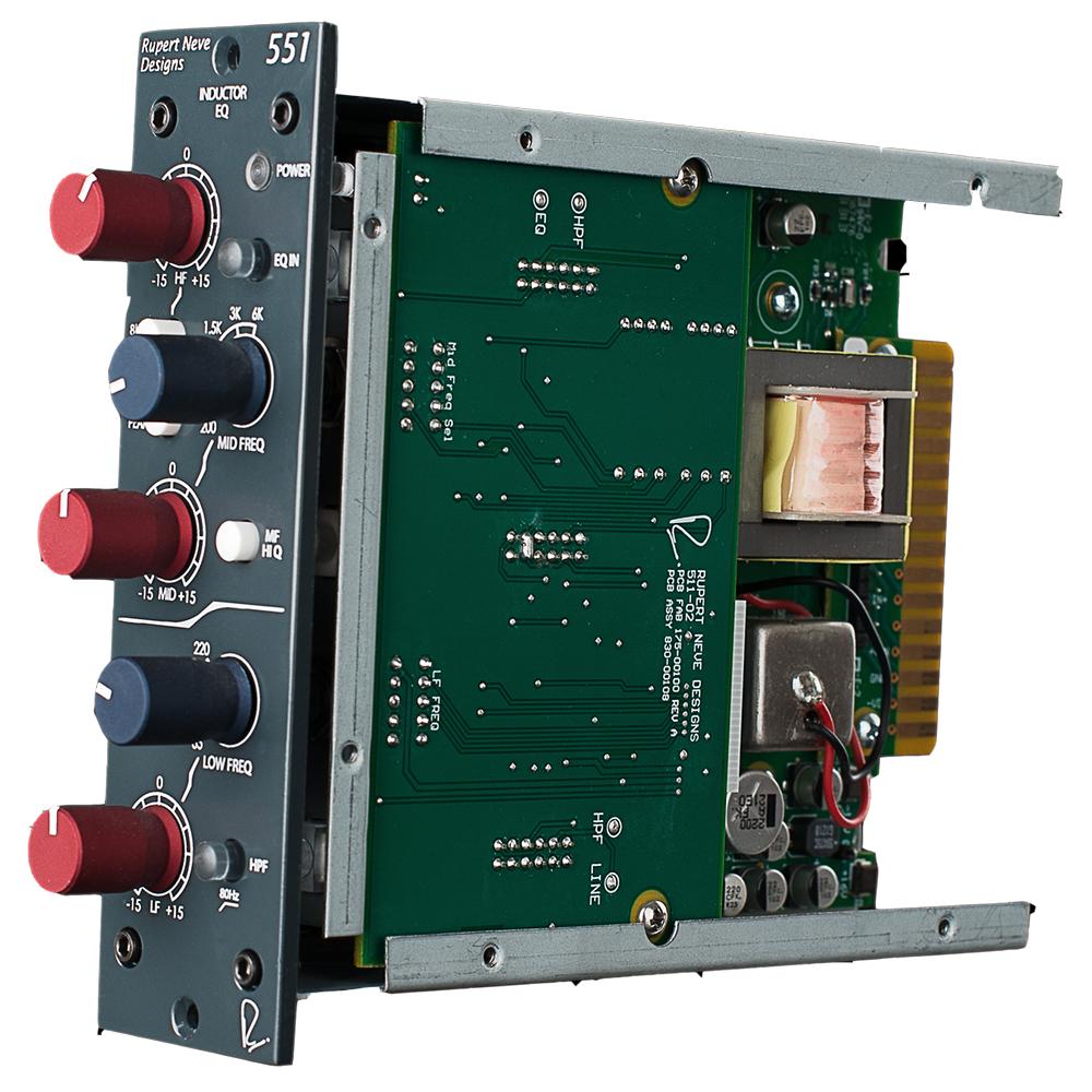 So, what are inductors? They’re wires wound around a coil that provide a form of frequency-dependant resistance. When they saturate, they bring out beautifully musical harmonics that give your tracks the smooth, polished sound that has made Rupert’s consoles and equipment so desirable for over fifty years. While it is possible to create a functioning EQ using off-the-shelf inductors, the attention to detail in controlling variables such as the winding and core materials in relation to the surrounding circuitry allows the 551 EQ to capture the vitality of Rupert’s older designs. While capacitor-based designs – like the 5033 – are often preferable for surgically sculpting tracks, the inductor EQ found in the 551 is capable of adding punch, vibrance, and personality to the source material that goes far beyond general frequency modification.