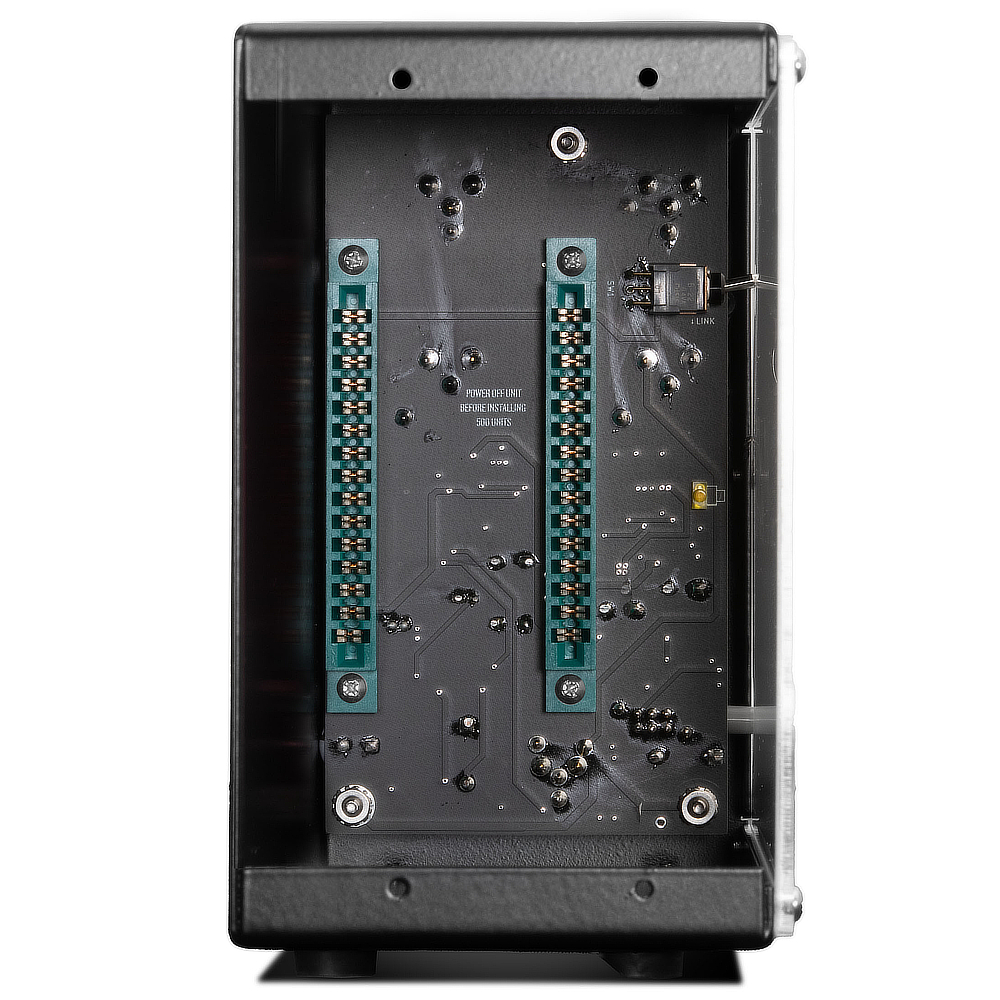 for each channel, ensuring complete power isolation between 500 units. The unit is powered by an external