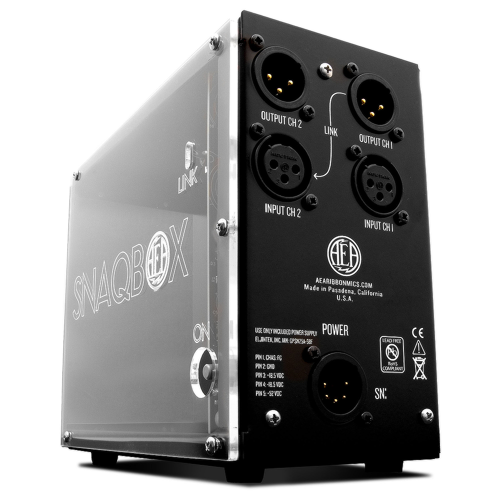 The AEA SnaqboxTM is a transparent, two-channel, 500-series chassis with separate dual linear regulators