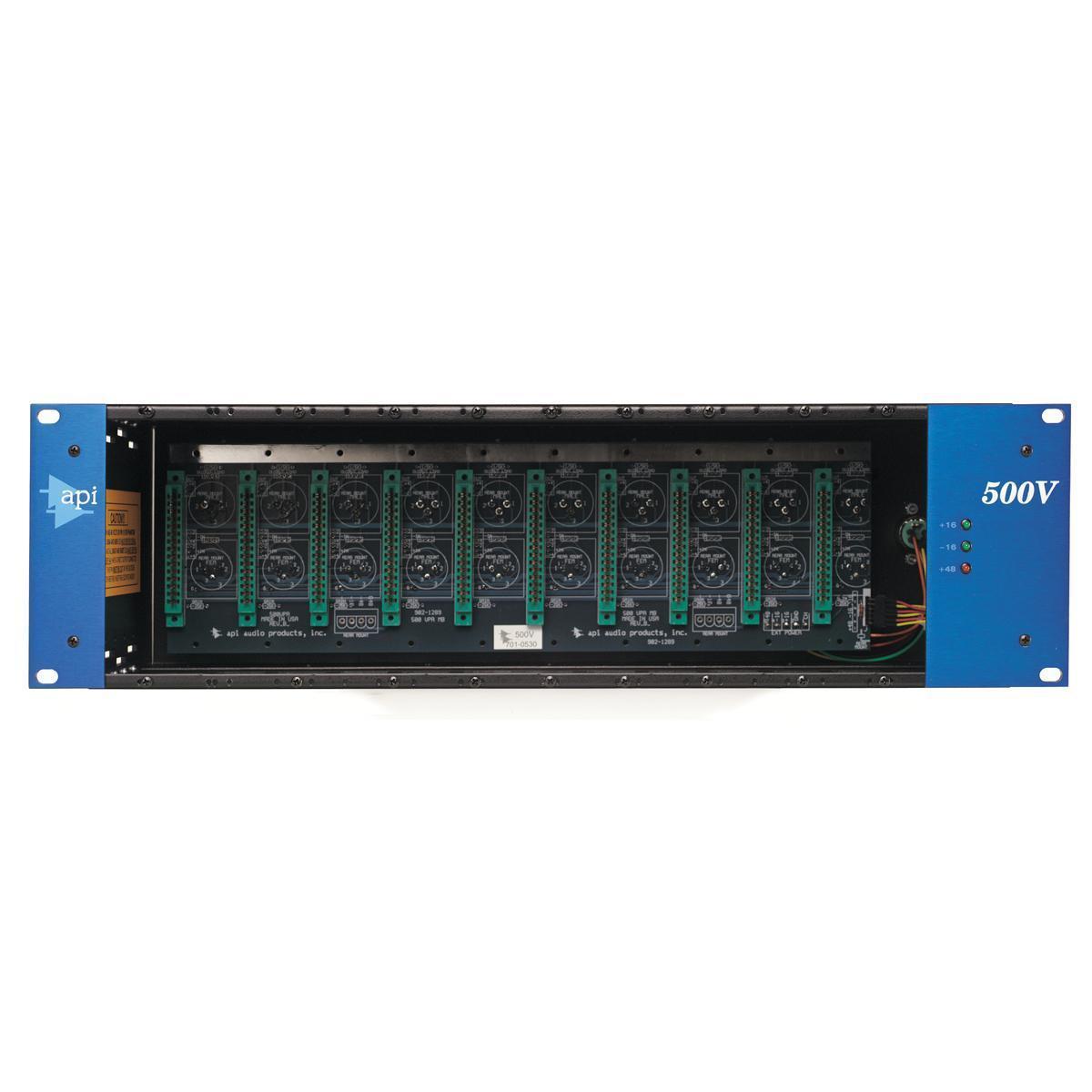 The API Model 500VPR is powered externally by a tri-polar power supply and is designed to accept API standard format 5.25" X 1.5" modules. The 500VPR is internally wired for PIN 2 hot, and comes with the API L200PS. The input/output jacks are both XLRs. The 500VPR can hold up to ten API modules. API makes several modules to fit this rack, including the 550A, 550B, 560, 525, and 512C. Like all API products, the 500VPR rack enjoys API's standard 5 year warranty.