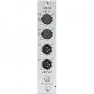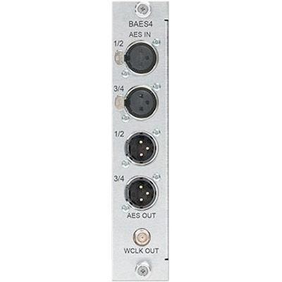 • 2 Stereo XLR AES Inputs • Clocking from BMB, AES IN 1/2, or AES IN 3/4 • Up to 40 channels digital I/O simultaneously in one chassis • 2 Stereo XLR AES Inputs • 2 Stereo XLR AES Outputs • Clocking from BMB, AES IN 1/2, or AES IN 3/4 • Up to 40 channels digital I/O simultaneously in one chassis