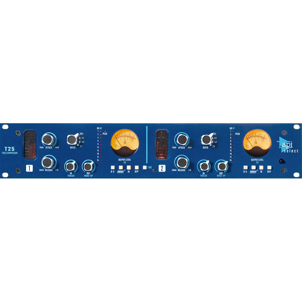 The API Select T25 is a classic 2-channel, FET feedback-style compressor/limiter with a Class-A tube output stage that utilizes a custom API transformer. Built with 12AT7WC and 12BH7 dual-triode vacuum tube, the T25 represents a new direction in API's line of compressors. It offers the user a powerful and flexible feature set, including the ability for use in either dual mono or stereo mode, and is carefully engineered to deliver classic tube performance. The T25 excels at delivering the unmistakable sound of API and features our industry-exclusive Five Year Warranty.