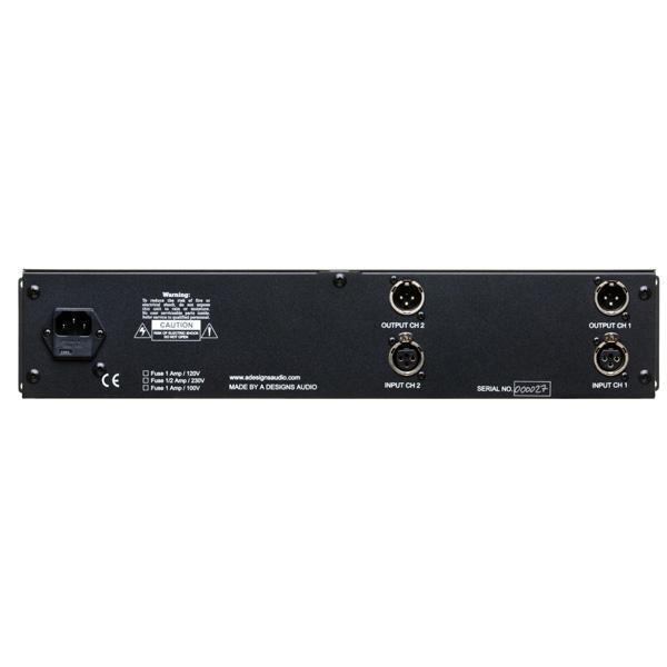 Eminently suited for tracking, mixing, or mastering, the two-channel A-Designs Audio EM-EQ2 is housed in a rugged, all- metal 2U chassis. It shares the same custom-milled faceplate, brushed-aluminum control knobs, big jewel power indicator lamp, and heavy-duty Carling toggle switch as the HM2EQ Hammer (which, by the way, the EM-EQ2 sonically pairs with marvelously). The EM-EQ2’s controls attenuate high band at 5k, 10k, 20kHz; vary bandwidth AND boost mid to high band at 3k, 4k, 5k, 6k, 10k, 12k, 16kHz; and boost or attenuate the low band at 20Hz, 30Hz, 60Hz, or 100Hz. Boost and attenuation range from 0dB to plus or minus 10dB.