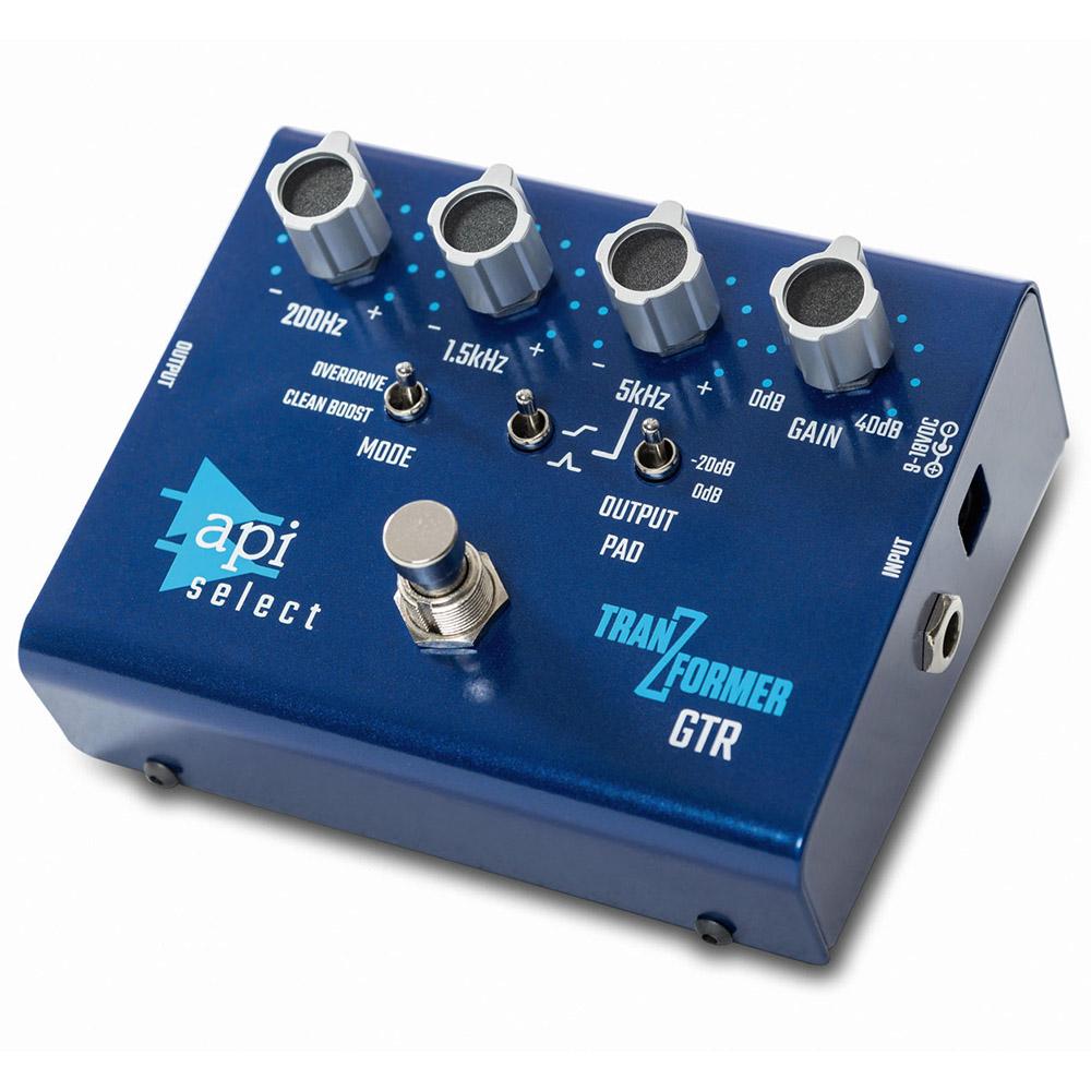 The API Select TranZformer® GTR incorporates API's legendary EQ circuit into a versatile and compact guitar effects pedal. Designed to easily fit into your pedal board and engineered to run on standard 9V power supplies, the GTR offers +/- 15dB of gain on 3 specific frequencies. Additionally, the gain stage can be switched from Clean Boost to Overdrive mode to drive the input OpAmp and add even more tones to your arsenal. Other features include a buffered bypass, -20dB output pad, selectable peak/shelf for upper frequency range, transformer output, and of course the classic API sound.