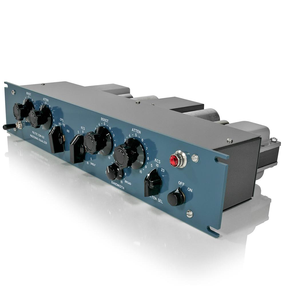The EQM-1S3 (mastering version) takes the EQP-1S3 one step further by replacing the BOOST/ATTEN potentiometers with 21-position (and BW with 11-position) ELMA switches, loaded with precision metal film resistors to achieve custom tapers for each control.