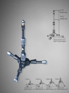 The TRIAD proprietary articulating base provides the weight and stability of large diameter cast iron bases and a fully adjustable attitude and footprint, thanks to its patent-pending ratcheting mechanism. Each leg of a TRIAD base has four ratcheted positions that provide up to 65 degrees of pitch to accommodate 'boom-less' front lines, uneven surfaces and stacking for storage.