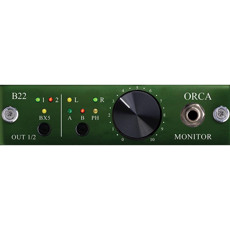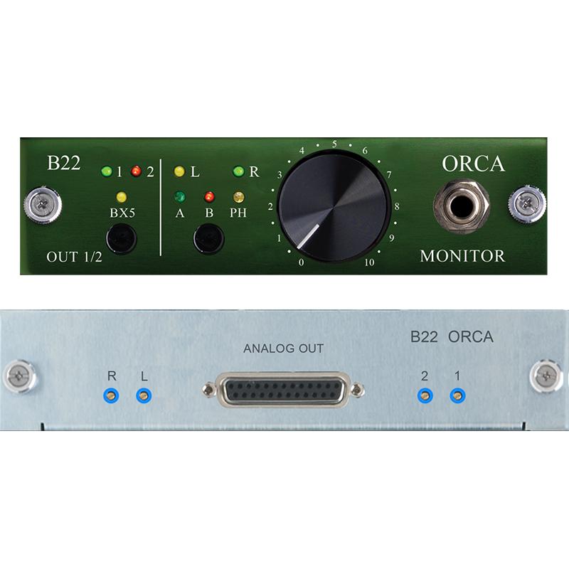 Couple the new B22 ORCA Control Room Monitor daughter card with a B16 Mothership and a B4 MIC/LINE input card and you have an amazing audiophile desktop recording rig. Or, combine the B22 ORCA with a B16 and a BAD4M and you have the ultimate 4 in x 4 out mastering solution.