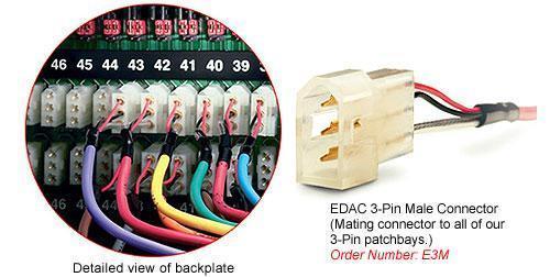 These patchbays are typically shipped with the shunts set up for Half-Normalling. For bussed grounds, specify when ordering. Please note that once these units are bussed, they cannot be altered. Panel is supplied with 52 E3M 3-Pin male mating connectors and 156 crimp pins.