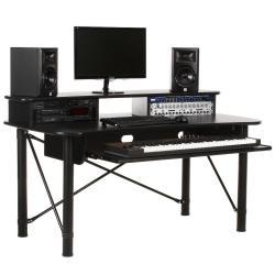 Studio Desk with 61" Tray for Keyboard and 2x 4U Racks - Black