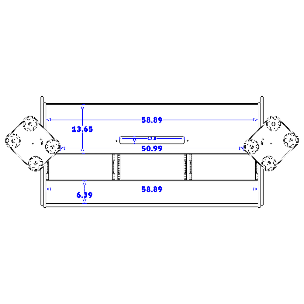 58.89”W x 7.5”D front for keyboard & mouse