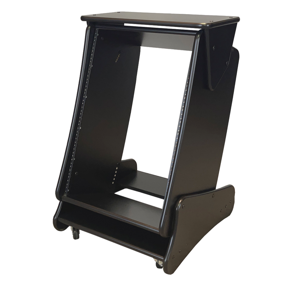 16U Rack unit w/six adjustable angles & adjustable angle shelf - black trim